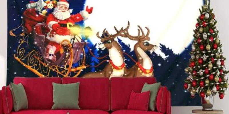 Large wall tapestries with winter or Christmas themes instantly add color and warmth. Options include: