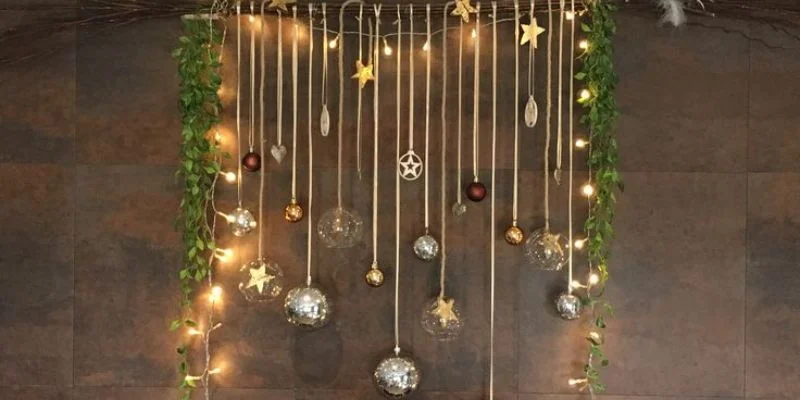 Instead of placing ornaments only on your tree, hang them vertically on the wall using ribbons or fishing wire. This creates a minimalist but stunning holiday display. Clear ornaments filled with faux snow or glitter look especially magical.